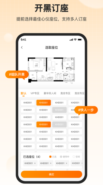 【开黑订座】在线订座,方便快捷,支持多人订座