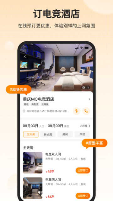【订电竞酒店】在线预订电竞酒店房间、预订床位