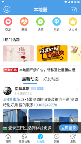 参与城市热门话题、加入兴趣圈子,分享同城生活点滴;