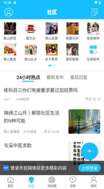 1、在本站下载并安装黄山市民网论坛app,进入软件首页可以查看各项功能