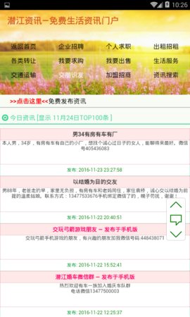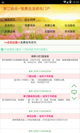 3、市民朋友可以通过潜江资讯网APP发布您的所见所闻,企业招聘,出租招租,各类转让,生活服务等各种各样的信息