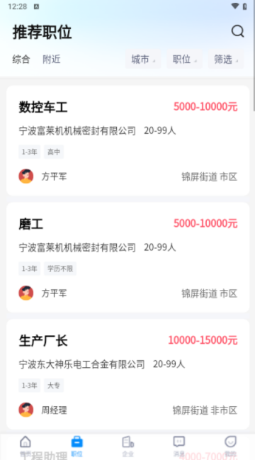 根据用户的定位帮您智能推送适合满意的工作,超多岗位在线开放。