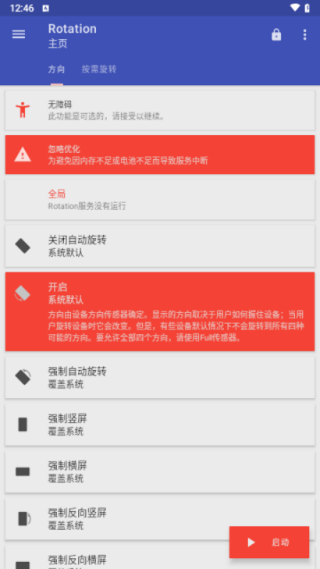 Rotation是一款可以帮助用户设置手机屏幕方向的软件,不仅具备专业、安全、好用、体积小巧等特色亮点,拥有着清爽直观的UI布局、以及强大的强制自动旋转、强制竖屏、强制横屏、强制反向竖屏等功能于一体,只需一键启动即可自由选择控制手机进行横竖屏显示。