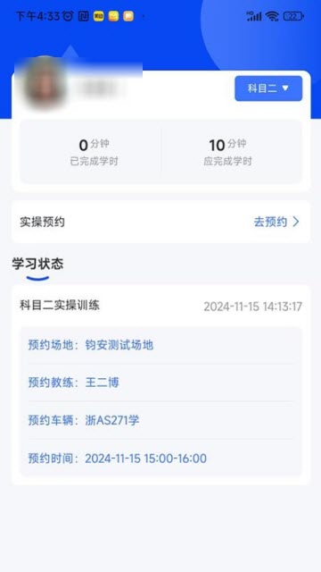 记录了用户的最新学车进度信息,用户可以查看最新的学车进度。