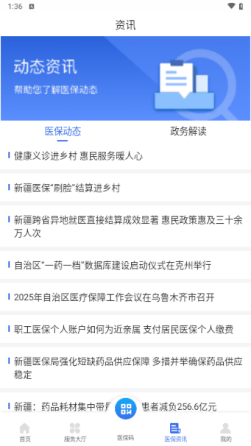 新疆医保电子凭证app是专门针对新疆地区打造的医保平台,在这里每天般都会为用户带来最新的医保相关资讯,用户还可以通过这款软件进行相关业务的查询,让用户看病便利,解决看病难的问题,感兴趣的朋友快体验下吧。