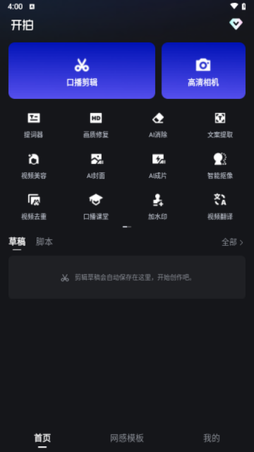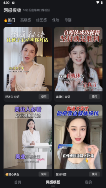 【网感模板】智能匹配剪辑素材,提供50+多风格多行业剪辑模板,10秒一键剪出网感满满的口播视频!