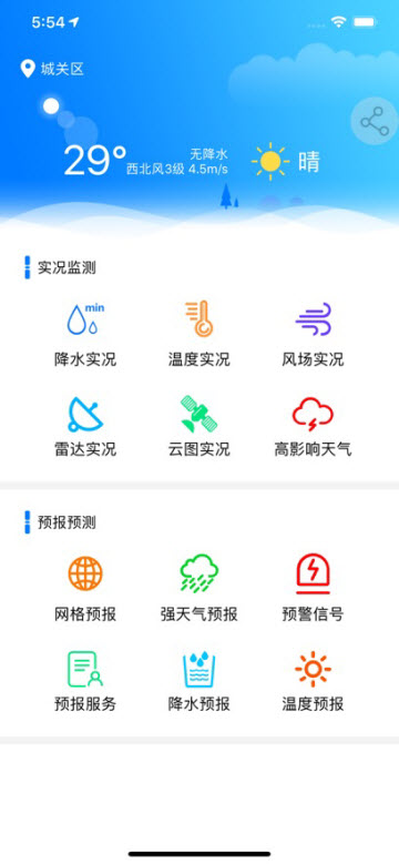 掌上生活:基于智能网格预报技术,提供未来7天直观清晰的天气预报,并贴心给出添衣、洗车等生活提示,为公众日常生活提供便利。