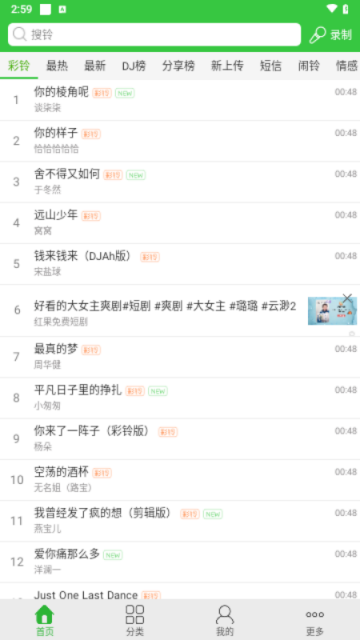 4、该软件汇集当前热门抖音神曲与各种音乐铃声。
