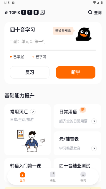 冲鸭韩语是一款韩语学习软件,专门针对韩语零基础入门学习者设计的,通过有趣、生动的学习方式,让学生在轻松愉悦的氛围中快速掌握韩语,直接就可以体验到不错的学习方式,还有丰富的学习知识内容直接获取,手机简单就可以开启各种学习模式。快来下载吧。