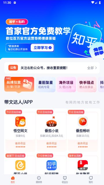 右豹,一个属于短视频内容创作者的一站式信息服务平台! 小说推文/短剧项目推广/网盘项目推广应有尽有!