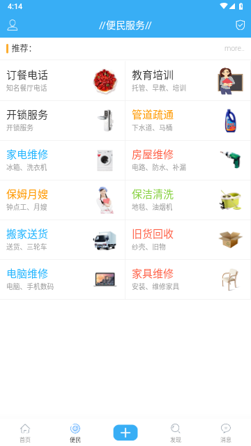 民生、公益、商城、家政、二手、便民