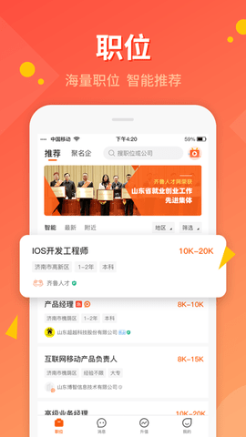 3、为山东各地区,如济南、青岛、烟台等地区的求职者提供一个能够随时随地移动求职的平台