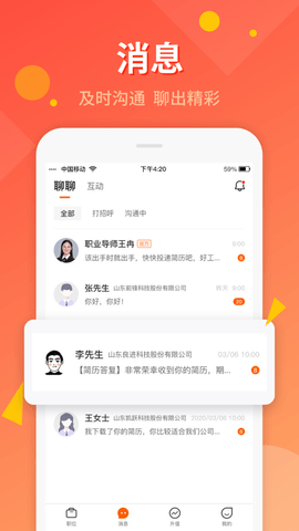 4、通过手机客户端即时接收企业给您发送的面试邀请
