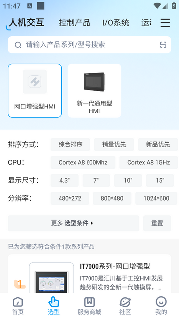 APP涵盖了汇川技术旗下产品,用户可以快速选型,对多个产品进行PK对比,各项参数一目了然,辅助决策;