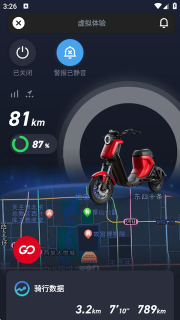 2、车况:剩余电量、定位信息、历史轨迹、骑行统计;