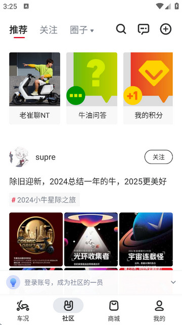 小牛电动app是专门为用户带来车机互联的服务app,在这里能够随时的看到电动的实时情况,其中还包括剩余电量,历史轨迹等。软件里面还有商城支持购买电动车的配件,还能实时的帮你记录自己的驾驶轨迹,防止你迷路。快来下载体验吧。