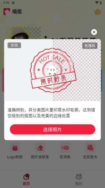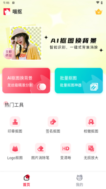 喵抠app是一款免费的智能AI抠图软件,以前大家抠图的时候都只能用ps一点点的抠,费时费力不说效果完全看个人手艺,现在大家不需要会ps,直接通过这款软件一键抠图。这款软件提供了智能抠图功能,超级给力,抠出来的图非常自然不会有毛边。
