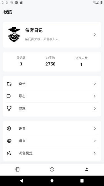 侠客日记是一款非常方便的手机日记软件,在这里有着简洁干练的设计让人眼前一亮,超多的服务在这里统统都,用户们完全可以在这里记录下自己的各种事情,软件的私密性非常好放心使用。喜欢的小伙伴可以来本站下载体验哦!