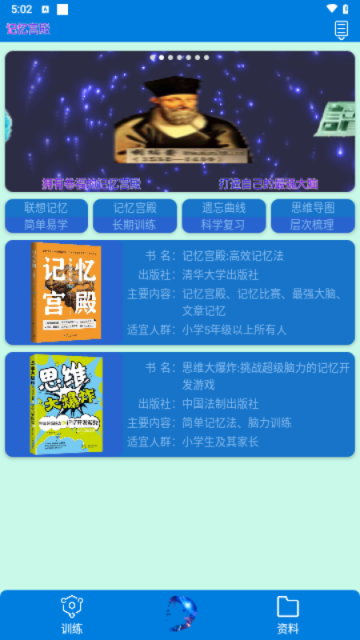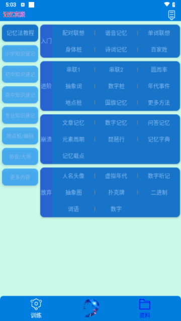 记忆训练软件,世界脑力锦标赛比赛项目训练,记忆宫殿1000地点桩分享,训练记忆汉语词汇或文章,扑克牌 抽象图 人名头像 二进制记忆训练,小学 初中 高中 大学英语单词拆分联想记忆,用艾宾浩斯遗忘曲线自动每天提示要复习单词,提升记忆单词量.最强大脑,右脑训练,右脑开发,拥有卷福的记忆宫殿,打造自己的最强大脑。