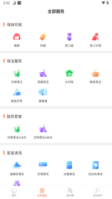 e家帮家政服务是一款专业的家政服务软件,该软件为用户提供了多种家政服务功能,各种家庭清洁、新房开荒、家电维修服务都能在这里下单,还有着多种钟点工、保姆、月嫂等家政人员可在线联系,满足了用户多种多样的家政服务需求,让你的家庭生活更加方便快捷。