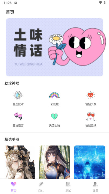 2、可以选择恋爱测试功能,获取恋爱测试题进行答题测试获取测试分析结果查看。