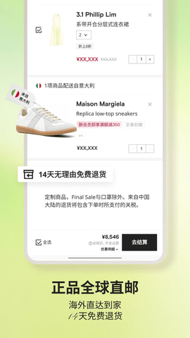 2、FARFETCH的合作方均为官方认证,来自全球50+个国家,1200+个的人气品牌、买手店及商场。经由专业统一的物流包装和卓越的递送服务,高效直邮送达国内。