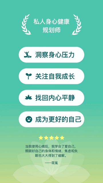 心晴是一款非常实用且贴合现代人需求的健康管理软件,如果你平时容易感到压力大或者情绪不稳定,心晴App的冥想功能会是一个很好的选择。它不仅提供了丰富的冥想内容,还能根据你的需求进行个性化推荐。你可以在冥想过程中放松心情,调节自己的情绪,在繁忙的工作中偷得片刻清静。