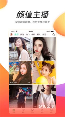 附近主播:附近主播一网打尽,快去撩吧。 海量分类:游戏,户外,秀场美女,猎奇艺人等海量直播类别等你网罗。 公正榜单:关注支持喜欢的女神主播登上周/月榜首宝座,人人都有机会登上富豪榜。
