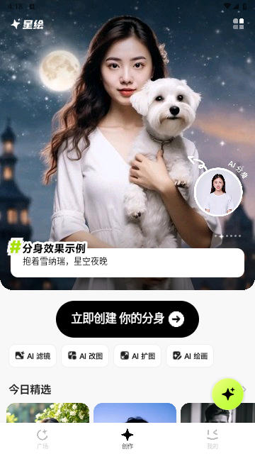 星绘提供丰富的AI生图能力,你可以创建AI世界的你,并且为你的分身定制多样的效果,体验各种虚拟人生。