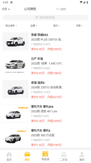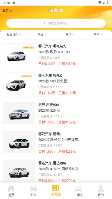 2、进入首页,这里有很多车都可以进行购买或者租聘;