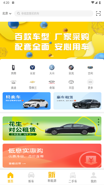 花生好车是一款汽车新零售软件,极低的购车门槛,如1成首付和超低月供,以及免购置税和赠送1年保险等优惠措施,为用户提供了极大的便利。软件还提供了丰富的车型选择,满足不同用户的需求。有需要的朋友们一定不能错过,快来下载购买吧。