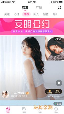 1、它能让你现身,得到各种有趣的场景,伴随着主播小姐姐的镜头在各个直播间讲述。 2、直播网恋聊天,通过直播工作室认识更多有趣的人,实时在线随机匹配社交聊天。 3、片源真的很丰富,还提供了多条台词供用户选择进入电影,资源充足。
