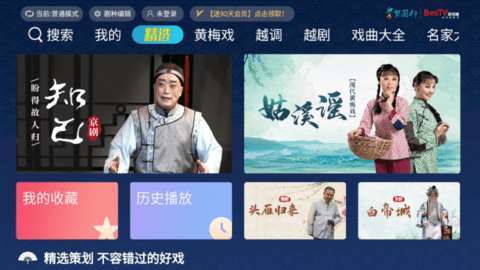 梨园行戏曲tv是一款免费提供给大家的戏曲观看软件,软件内置多种操作模式,就算是不懂的老人也能很轻松的进行观看,而且登录就是免费vip,观看起来也是非常的方便,各种各样的戏曲资源极大地满足了用户的观看需求,喜欢看戏的朋友可以来下载体验下哦!