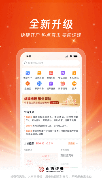 在线开户,安全便捷,3分钟完成股票、基金、OTC等账户开立,让您畅游股海、轻松理财。