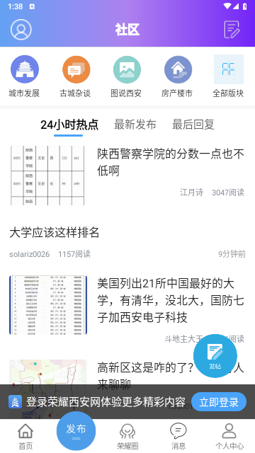 2、社区,论坛热版推荐,版块关注,网友回帖推动提醒
