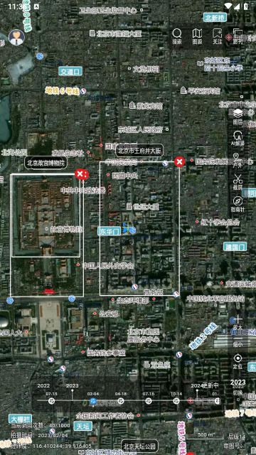 地图叠加展示特定区域的影像,通过直观时间轴轻松切换不同时间段的图像,便捷追踪变化。