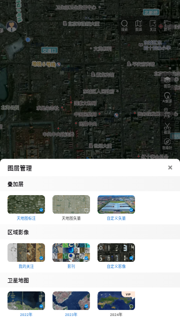 每个图层都可单独配置显示开关,支持快捷切换开启的卫星地图,操作简单高效。