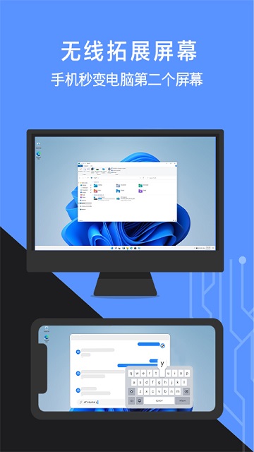 电脑可快捷投屏到手机、平板,支持手机反向控制电脑,还可以使用手机键盘给电脑打字,轻松触控电脑。还支持电脑控制安卓手机,连接方法超简单!