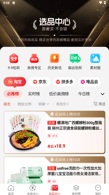 省团优选是一款非常实用的在线购物软件,致力让用户更加省钱的购物。软件拥有海量的商品资源,各种类型的都有,价格非常的实惠,质量也有保障。同时还有海量的优惠券资源,帮助用户在购物的时候更省钱。汇集全网优质优惠券商品,帮助淘客快速选品。