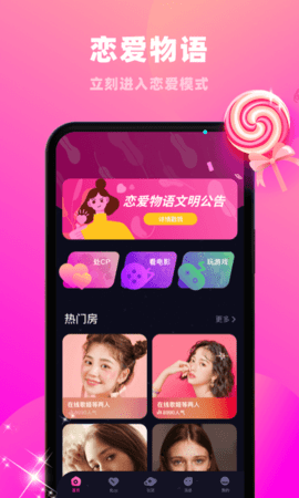 恋爱物语是一款有趣的互动社交应用,通过声音匹配交到志趣相投的好朋友,选择感兴趣的主题房间一起K歌聊天~平台有丰富多彩的交友玩法,让你可以在线感受非常有趣的交友方式,通过各种游戏的互动,帮助用户可以认识更多的好友,让自己的交际圈可以更加的广泛,这里交友非常有趣,你喜欢的任意好友都可以在线成功认识并且牵手成功。