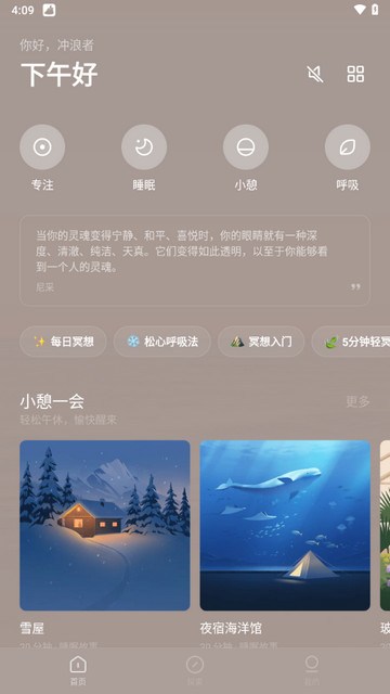 3、提供各种不同的轻冥想内容,让用户可以在轻冥想中感受平静;