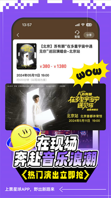 这款软件还有着不定期提供独家优惠券,让您的购票开销更有价值。有了该软件,用户无需担心高额门票价格,尽情享受您钟爱的活动。快来本站下载软件,探索更多精彩活动,用更少的钱获得更多的乐趣。搜索并认准"票星球",一起开启您的娱乐之旅吧!