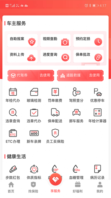 【车生活】代驾、道路救援、年检代办、玻璃检测、罚单缴费、驾照查分、优惠停车、违章查询等十多项车主服务