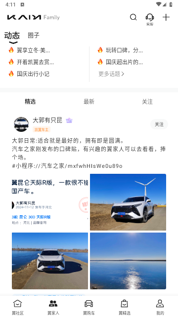 1、社区:了解凯翼汽车最新资讯,随时随地分享精彩瞬间,参与多样化社区活动,结交各路专业大神,缔造美好生活社区。