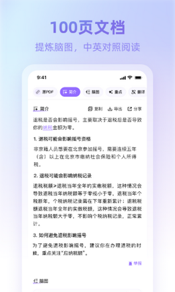 2、PDF总结,外文文献、报告、论文,一键总结,无惧语言障碍,让知识的获取扩展到全球。