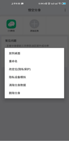 多开分身版,在12MB的应用内存情况下,提供免费分身放桌面快捷方式、多开消息通知,专注应用分身满足白领、微商等人群多开需求。悟空分身--百万用户正在使用的免费多开