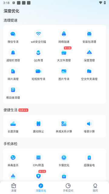 3、微信QQ清理,专业识别聊天缓存,释放大量空间。