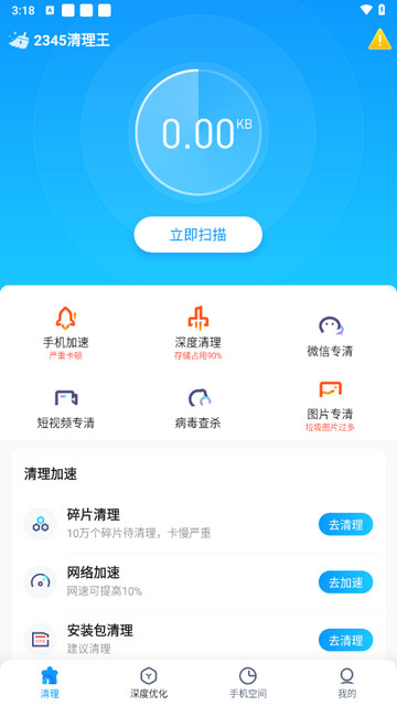 2345清理王是一款专注安卓用户的专业手机清理工具,使用先进的垃圾扫描引擎,一键式地清理垃圾,深度扫描,将垃圾一扫而空,既可以释放手机存储空间和内存又能使手机更加的流畅,一举两得。软件清理的功能非常的强大,不仅可以清理手机无用的图片垃圾还可以清理短视频,极速清理抖音、快手、淘宝等常用软件产生的视频缓存,还可以屏蔽无用通知,一键清理烦人广告骚扰。