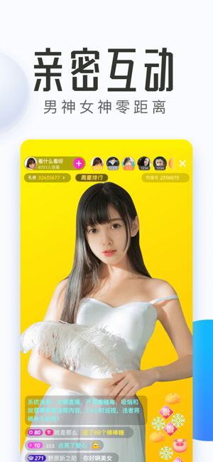 3、与你喜欢的女神在直播间进行交流互动,在活动中拉近用户与女神之间的距离。