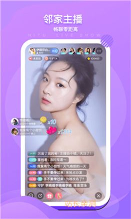 丰富活动:各种精彩活动,连麦,PK,大家一起嗨! 走心交友:一键发现附近的心动女神,陪你深夜彻聊! 直播互动:女神级主播对你撒娇卖萌,为你唱歌跳舞,让生活不再无聊! 附近交友:相识偶遇同城兴趣好友,周末约饭聊天,消灭单身和孤单! 超高颜值:清纯校花,人气歌手,甜音女孩,更近距离的全方位的了解她们!